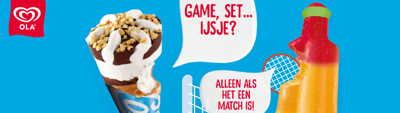Na een intens potje tennis is een ijsje meer dan verdiend. Gelukkig kan dat zónder schuldgevoel! OLA past perfect in een uitgebalanceerd dieet, met keuze uit Magnum, Solero Exotic of een Raketje met maar 40 kcal. Voor ieder wat wils! Speciaal voor tennisliefhebbers ontwierp OLA een eigen IJskaart. Ook barinkopers kunnen weer aan de slag met een frisse, gepersonaliseerde kaart.